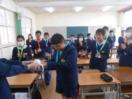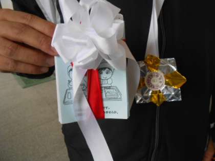 卒業する6年生へ給食調理員さんからメダルとレシピ本がプレゼントされました。