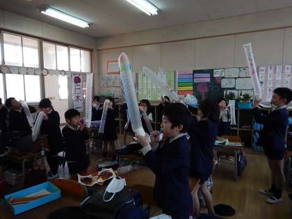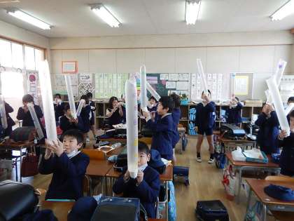 きれいに膨らんだビニール袋には自分で描いた絵があります。