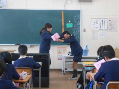 卒業する6年生に成長の記録が渡されました。