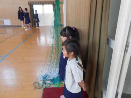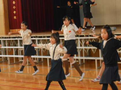 躍動感あふれるダンスを見て1年生もうっとりしています。