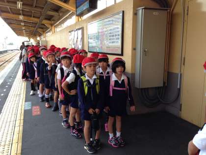 秋の様子を学習するために大野川緑陰道路に校外進出です。