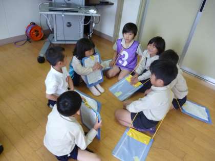 1年生と2年生で、学校たんけんをしました。