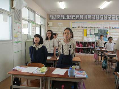 6年生が、今週土曜日のミニコンサートで、此花少年少女合唱団のみなさんと一緒に歌う「てをつなごう」を練習していました。