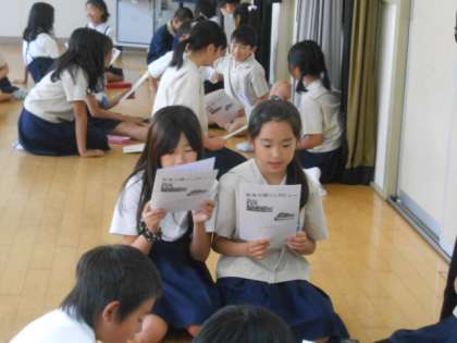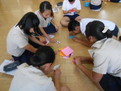 まずは、グループで自己紹介、次にインタビューの練習をしました。インタビューに答えて下さったお礼に渡すおりづるも制作しました。当日が楽しみです。
