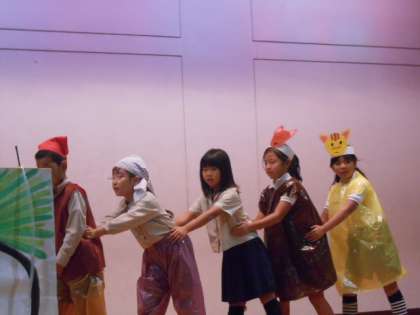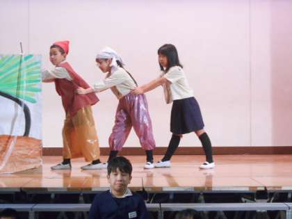 3年生 英語劇「The giant turnip(大きなかぶ)」の練習風景です。