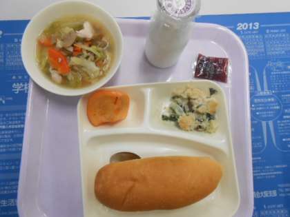 ほうれん草のグラタン・・・マカロニがたくさん入っていて、チーズの風味がおいしかった。