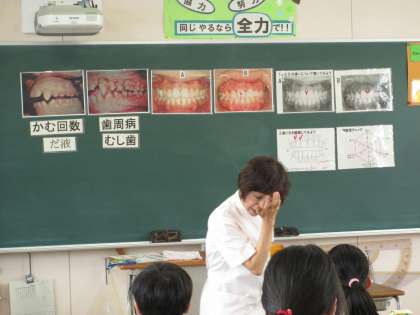 歯科衛生士の方に来ていただき、歯と口の健康教室が行われました。