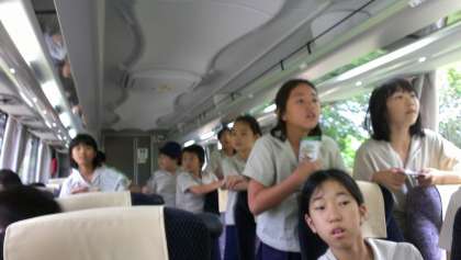 みんな総立ち、バスの中は興奮の渦です。