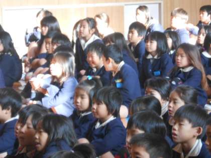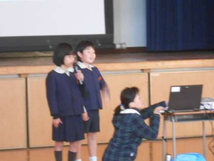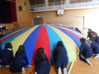 此花区お楽しみ集会で活動するパラバルーンの紹介をしました。5年生がパラバルーンを