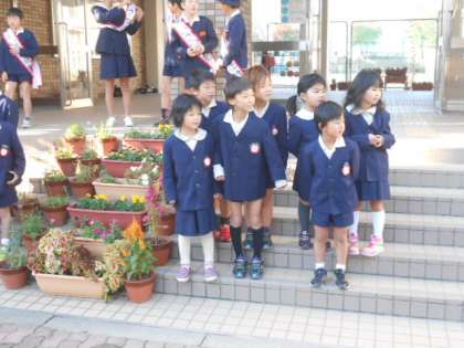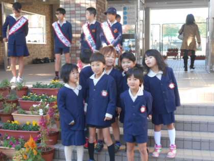 1年生が玄関に立ってあいさつ運動をしました。朝から元気な声を聞くと、活力がわいてきそうです。声を載せられないのが残念です。玄関で大きな声が響いていました。