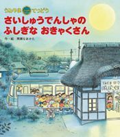海辺の町と山奥の村を電車で結ぶ「うみやまてつどう」。「うみやまてつどう」には、時々不思議なことや楽しいことが起こるそうで・・・。山奥行きの最終電車、いつもは空いているのに、今日はなぜか大勢のお客さんがおしかけています。見かけない人たちばかり、どういう訳かみんな丸々とした体型をしているのです。次の駅でも、またその次の駅でもどんどん乗車してきます。心なしか電車が膨らんでいる!?やがて電車が「ぽんぽこやまえき」に到着すると、一斉に下車するお客さんたち。一体ぽんぽこやまで何があるのでしょう。駅長さんがふと手の中を見てびっくり!切符だと思っていたのは、すべて葉っぱだったのです。慌てて後を追いかけていった駅長さんと駅員さんの二人が見たものは?観音開きになるしかけに描かれた、クライマックスの場面は圧巻です。のどかな風景の中をのんびり走る「うみやまてつどう」。その姿だけでもワクワクしてしまうのに、そこで起きる出来事がまた本当に平和で楽しくて微笑ましい。本来ならば「だまされた!」と怒り出してもいいはずの駅長さんと駅員さんが、怒るどころか思いっきり楽しんでいるその姿。だまされたのが嬉しいのか、ちょっと自慢気な顔にも見えてきます(笑)。なんてうらやましい光景!ああこんな大らかな雰囲気のただよう鉄道、本当にあるならば絶対行ってみたい。作者は大人気電車絵本『でんしゃでいこう でんしゃでかえろう』の間瀬なおかたさん。駅の様子、電車の通る風景、電車の音や姿はもちろんのこと、このシリーズでは、豊かな自然に恵まれた鉄道の沿線ならではの楽しみが沢山描かれています。次はどんな出来事が起きるのか、早くも楽しみになってきてしまいました。