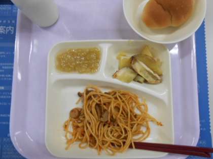 きのこスパゲッティ・・・これだけきのこ以外の具が入っていたらミートスパゲッティといってもいいのではと思うぐらいたくさんの種類の具が入っていました。