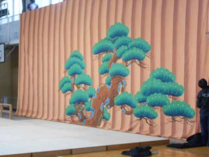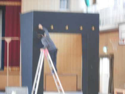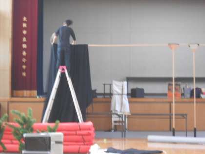 明日、「能」の鑑賞会を実施しますが、前日の午後その舞台設置作業を業者がおこなっています。