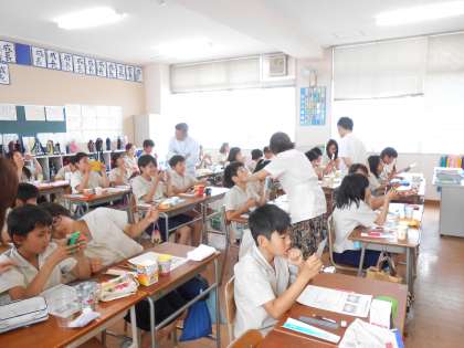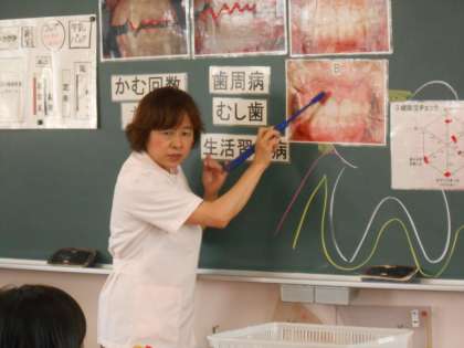 教育委員会から派遣された北先生の指導のもと校医の瀧本先生にも見ていただきました。