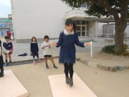 「先生、見て!」と声がかかります。この写真の子どもたちは、すばらしい2重とびをします。しなやかに跳ぶことができます。