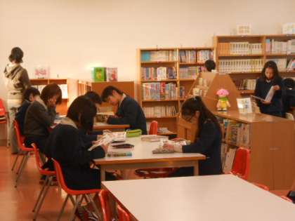 会議室に用事があって3階に上がってみると靴箱にうわばきが並んでいます。どの学年が読書しているのかな?と覗いてみると5年生でした。さすが梅香小学校の5年生は静かに図書室を使用することができます。