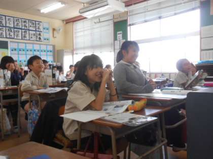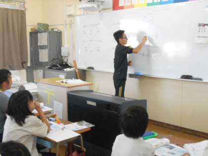 5年生は理科の勉強をしています。ときおりユーモアを交えながら市村先生と楽しく