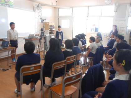 5年生は、タブレット端末を使用して日本の文化について調べたことをまとめました。先日、オーストラリアのプレンベール小学校とSkypeで交流授業を行いました。今度は、自分たちが調べた日本の文化についてプレンベール小学校の子どもたちに伝える予定です。