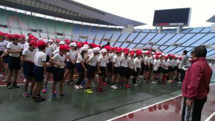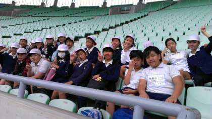 梅香小学校の6年生も全員参加で長居陸上競技場へ行きました。