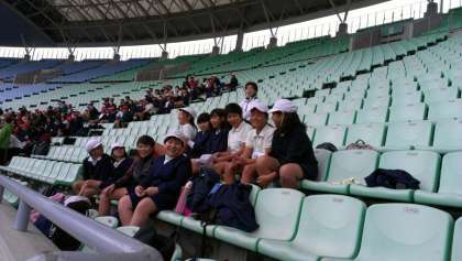 スタンドからは、あつい声援を送ります。走り終わった走者を拍手で迎える姿も。