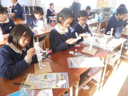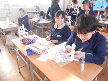 6年生は紙粘土で未来の自分を作っています。人の体を粘土で作るのはなかなか難しいようですね。みんな楽しそうに作ってます。