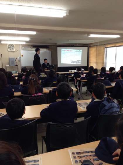 まずは、西九条駅で駅の紹介や、駅員さんのお仕事の紹介などを聞きます。
