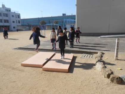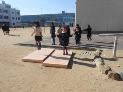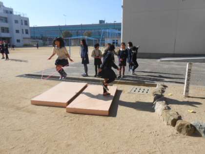 3学期になっても、なわとびのジャンピングボードには列ができます。友だちが上手になるのがわかり、自分も上達するのが実感できるからでしょう。