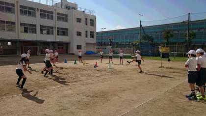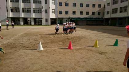 ぽかぽか陽気の中、久し振りに運動場での体育の授業です。