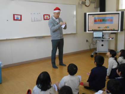 2学期最後の英語のレッスンは、クリスマスカード作りをしました。