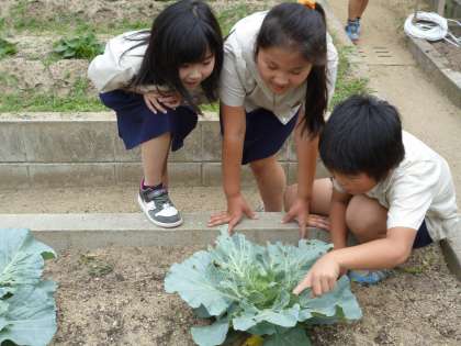 畑に植えたキャベツにモンシロチョウがたまごをうみました.