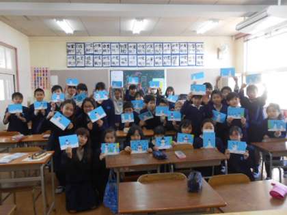 2学期に交流した、オーストラリア(クイーンズランド州)のプレンベール小学校のお友だちからクリスマスカードが冬休み中に届いたので5年生と6年生に渡しました。