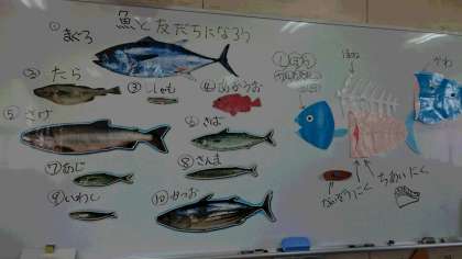 他校から栄養教諭が来校され『魚と友だちになろう』と題して栄養指導が実施されました。