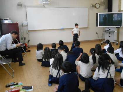 審査員の先生やクラスの友だちの前でドキドキしながらもがんばっていました。
