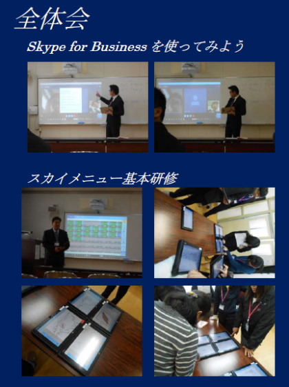 全体会では、授業で使用した、Skype for Businessとスカイメニューについての操作研修と教育センター古閑指導主事から指導講評をいただきました。