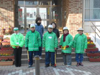 梅香小学校のがんばるマン「梅香小学校見守り隊」のみなさんです。今日は、区役所の方が写真を撮るというので、学校でも1枚撮らせていただきました。