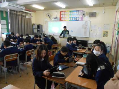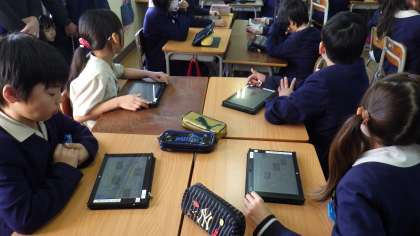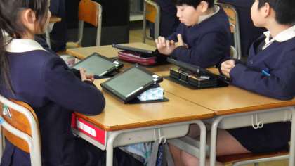 5年生は、グループに分かれて各々が撮ってきた写真をタブレット画面に貼り付け安全マップを作成しました。