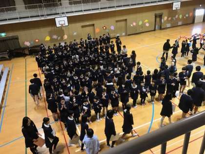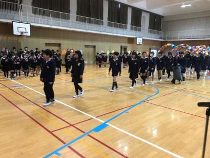 在校生が練習に練習を重ねた呼びかけ。終わった時、6年生から思わず拍手が!!