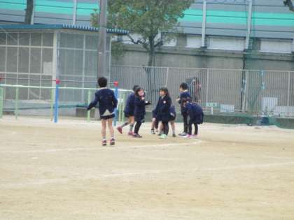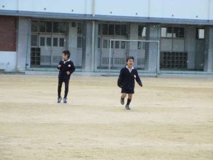 チャイムと同時に運動場へ飛び出していく1年生。