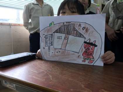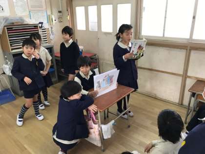 2組さんにお邪魔して、泣いた赤鬼の紙芝居を披露しました。