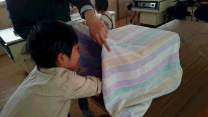 新兵器『手洗いチェッカー』を使って手の汚れを『見える化』する学習です。