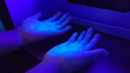 専用のローションを塗ってチェッカーに手をかざすと汚れが一目瞭然!!