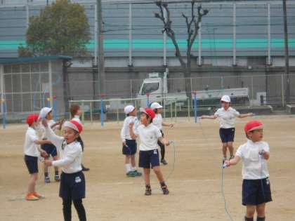 この寒い中、子どもたちは体育の学習に取り組んでいます。寒さもへっちゃらです!