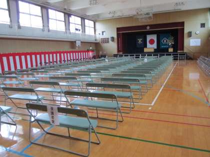 梅香小学校では新入生を迎えるために本日、入学式準備を行いました。