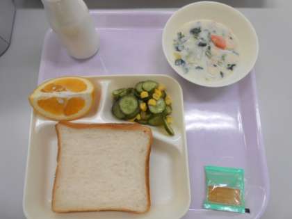きゅうりとコーンのサラダ・・・きゅうりはこんな寒い時期どこで作られているのかな?