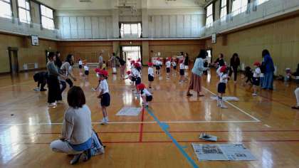 新聞紙を使っての体ほぐし、是非お家でもお試しください♪