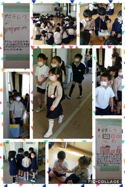優しい2年生のお陰で、約束通り静かに怪我人も迷子もなく学校探検を終えることができました♪