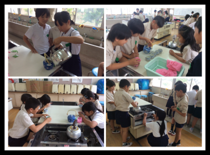 お茶を入れることも仲間と協力するととても楽しそうでした。調理実習や林間学習の飯ごう炊さんも楽しみです。