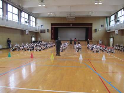 子どもたちは、校長先生の東日本大震災のお話を神妙な面持ちで聞き、真剣に避難訓練に取り組むことができていました。