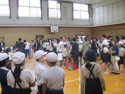 あいにくの天候で、屋上への二次避難をすることはできませんでしたが、たくさんの保護者の方々に参加していただき、スムーズに引き渡しを行うことができました。