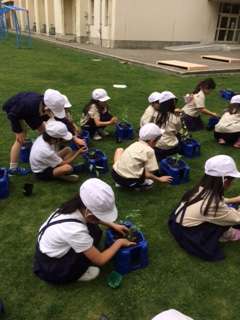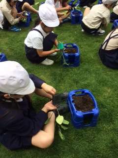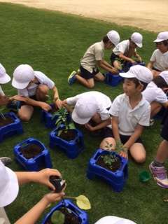 ピーマン、オクラ、ナス、ミニトマトの苗を植えました。